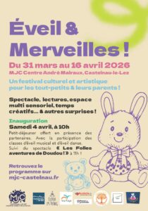 La MJC Centre André Malraux accueille la 2ᵉ édition du festival « Éveil & Merveilles », dédié à l’éveil culturel et artistique. Au programme : des dispositifs de libre exploration en accès libre dans les halls, des animations et spectacles, des temps partagés parents-enfants, favorisant le développement des tout petits, la créativité, le lien avec la culture et la complicité familiale !